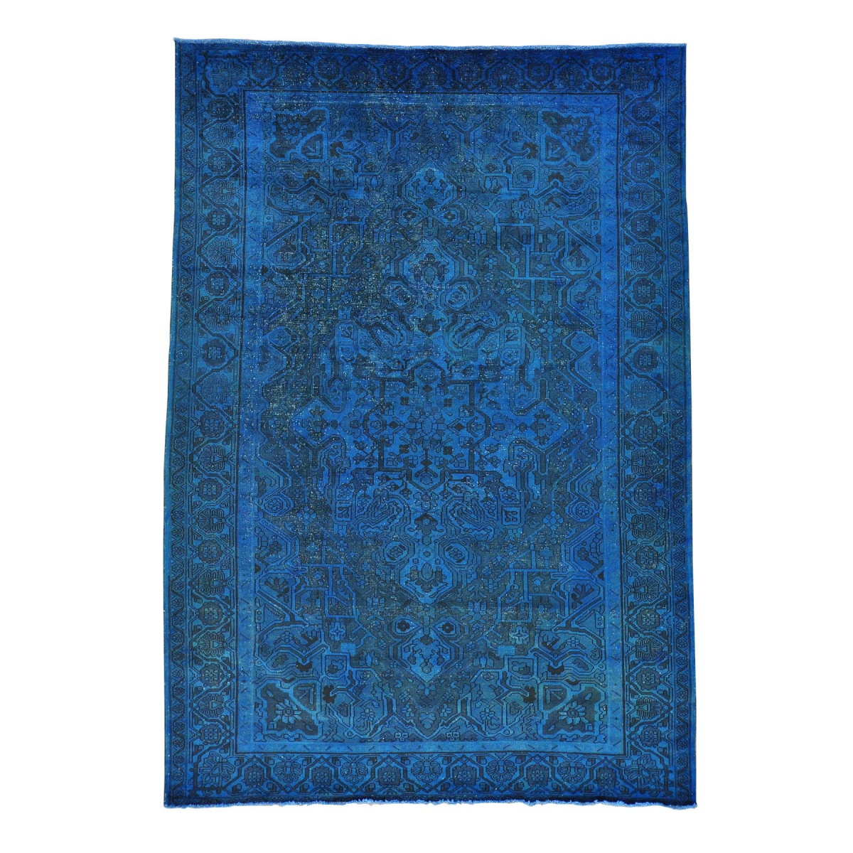 1800 Get A Rug sh24327 6 ft. 10 in. x 10 ft. Pure Wool Overdyed Worn Down Persian Tabriz Handmade Oriental Rug Blue