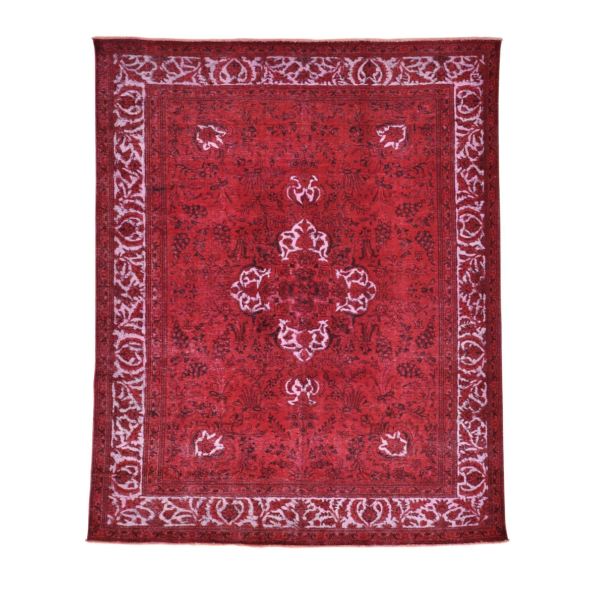 Features- Persian tabriz barjasta red overdyed pure wool oriental rug