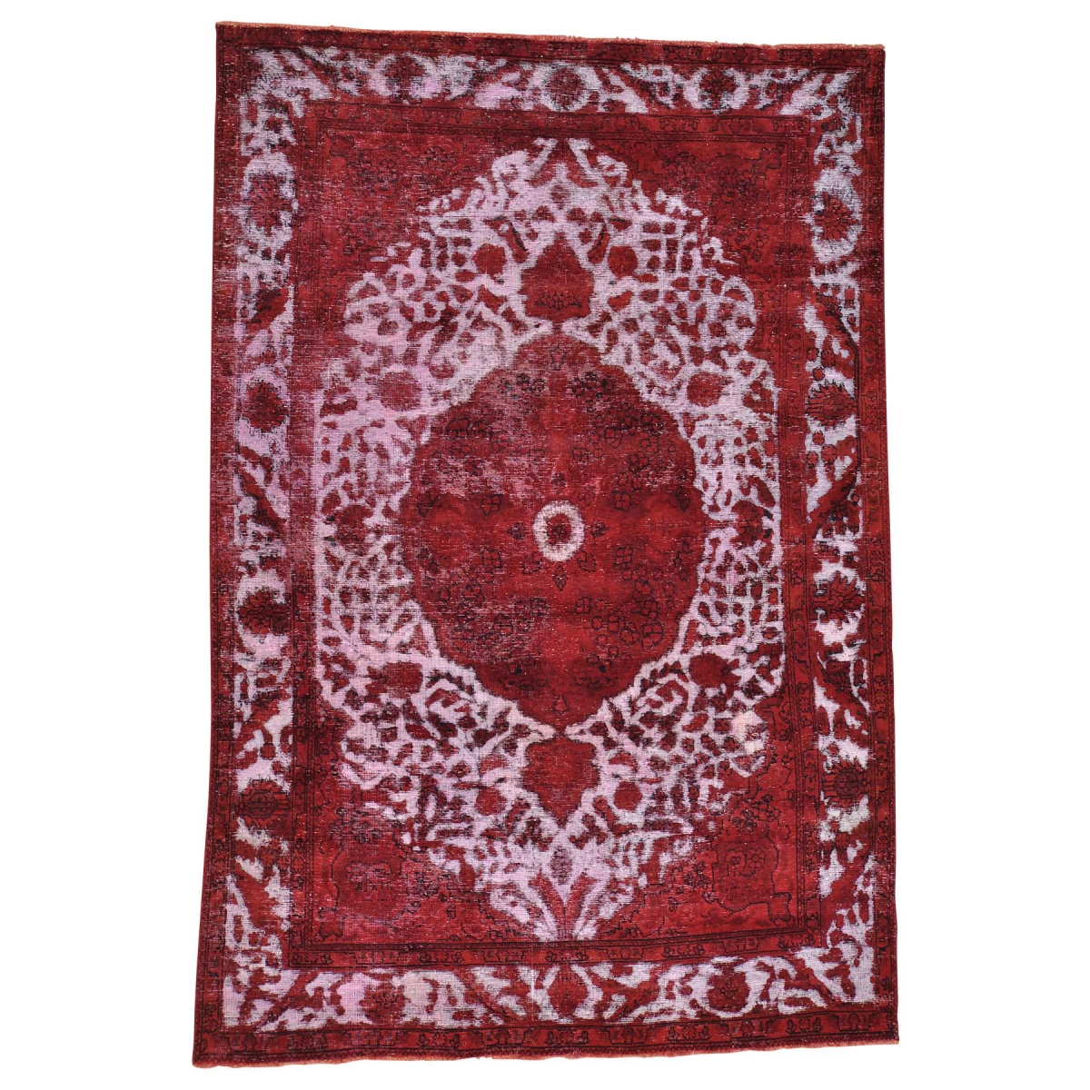 Features- Handmade red overdyed persian tabriz pure wool oriental rug