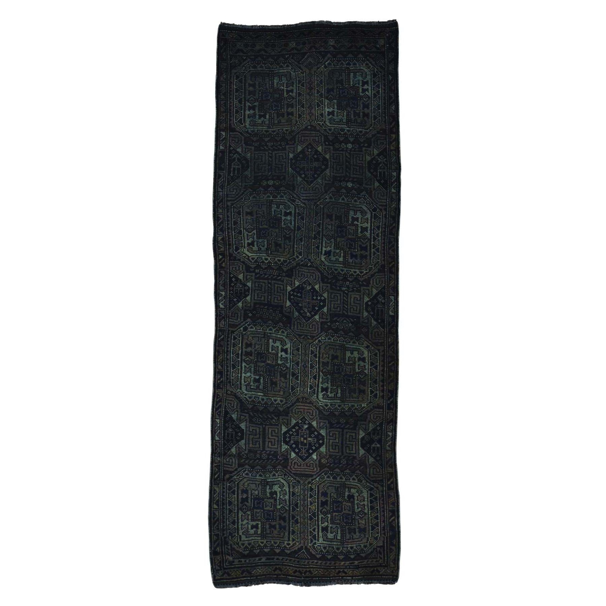 Hand knotted overdyed baluch worn down wide runner rug