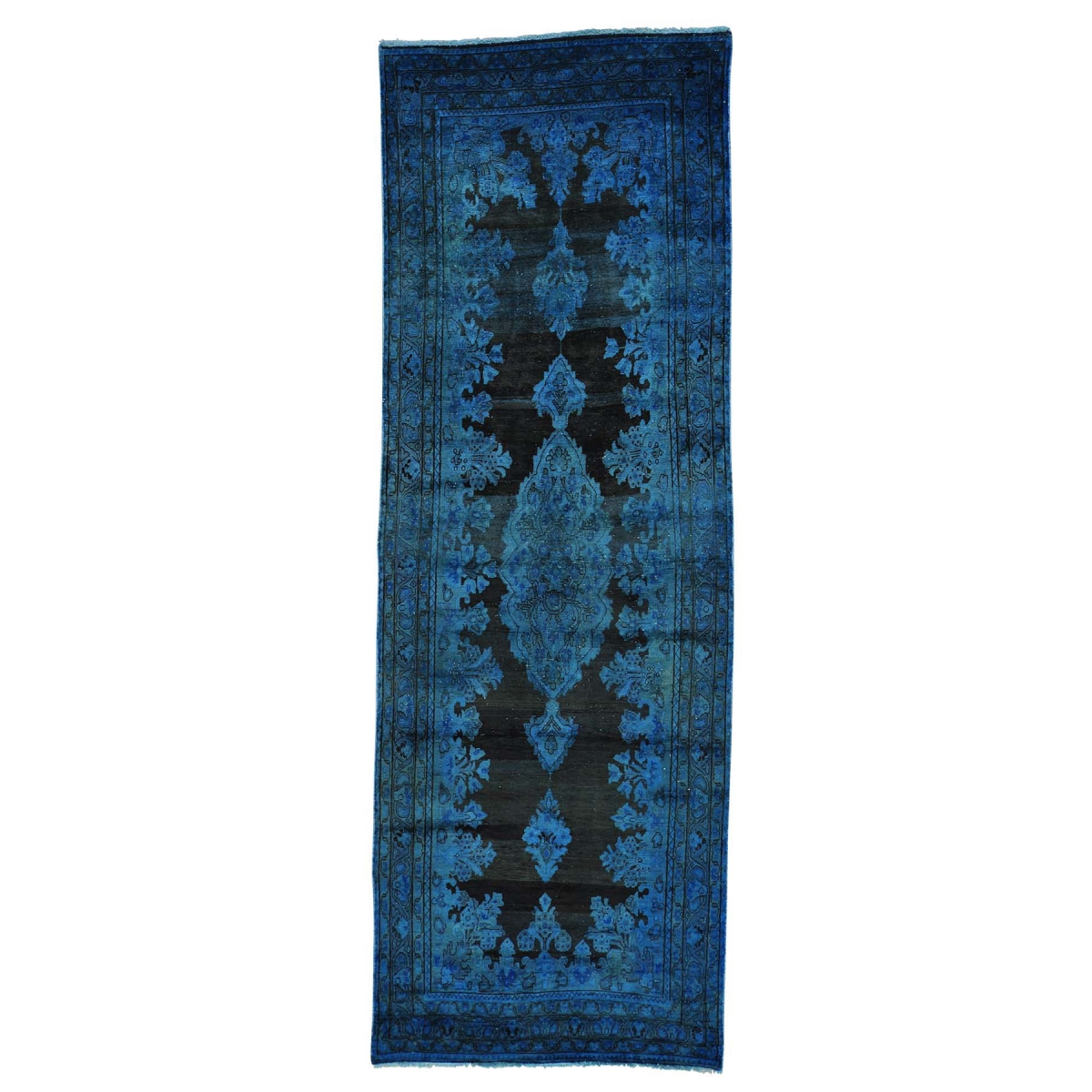 Semi antique overdyed kerman runner hand knotted oriental rug