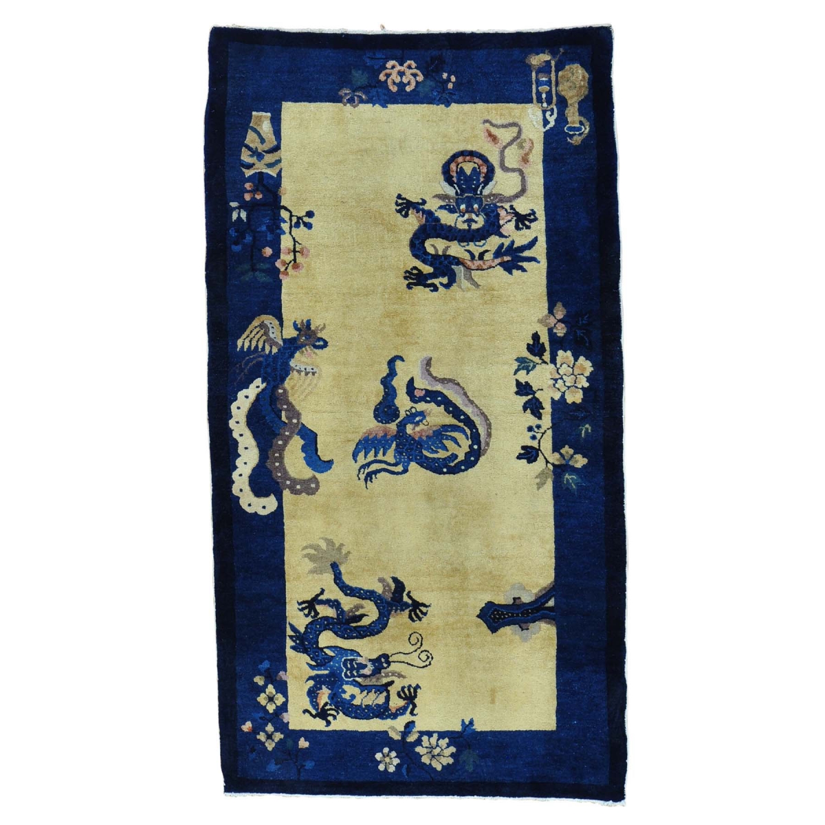 1800 Get A Rug sh28126 3 ft. 1 in. x 5 ft. 10 in. Antique Chinese Peking Dragon Design Mint Cond Runner Rug Beige