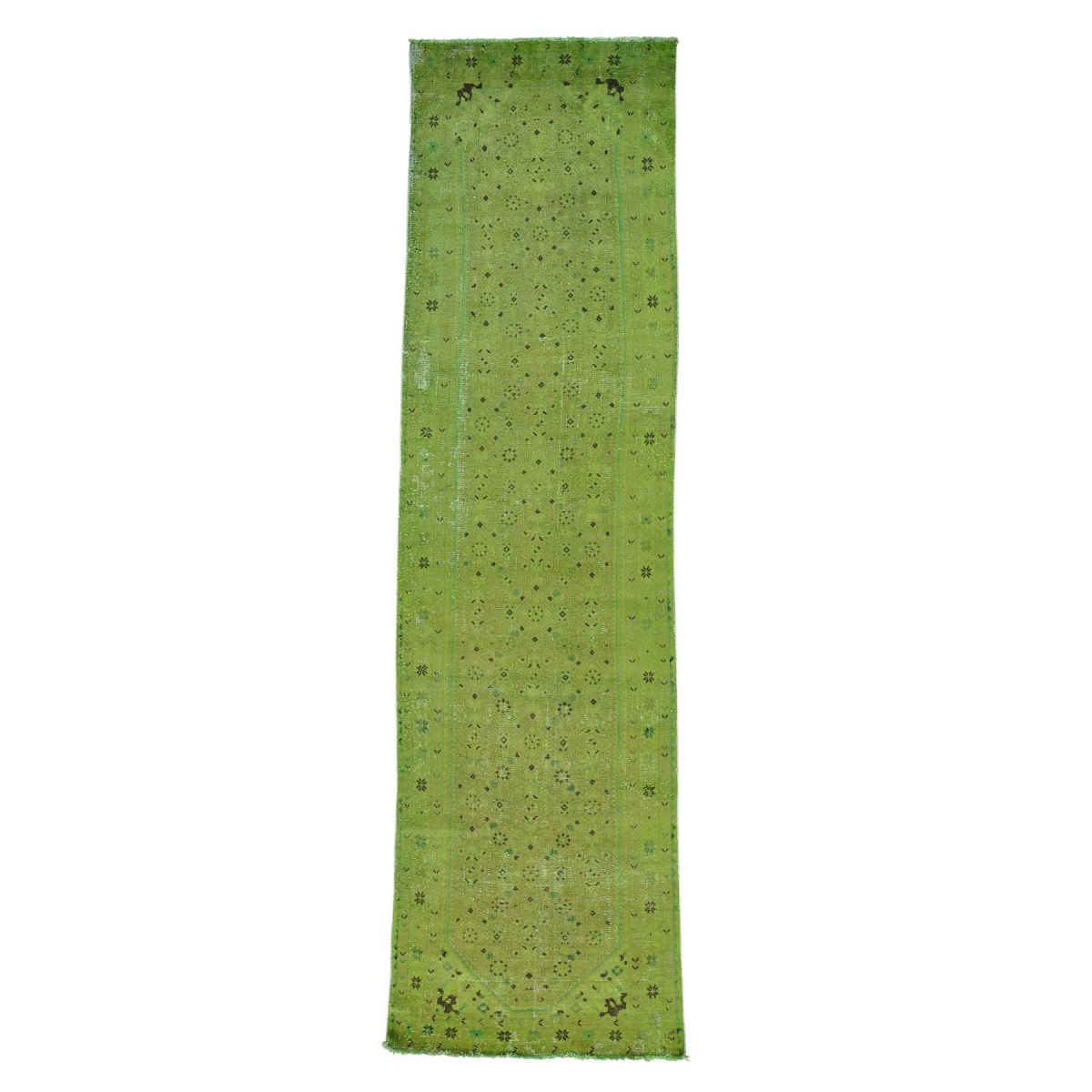 1800 Get A Rug sh28210 3 ft. 7 in. x 12 ft. 3 in. Hand Knotted Overdyed Malayer Worn Down Wide Runner Rug Green
