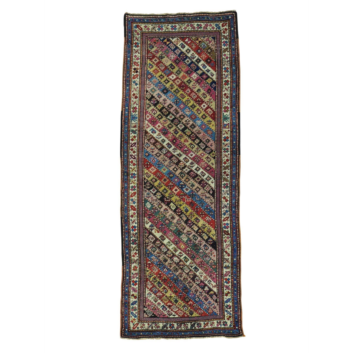 Antique caucasian gendge exc cond runner hand knotted rug