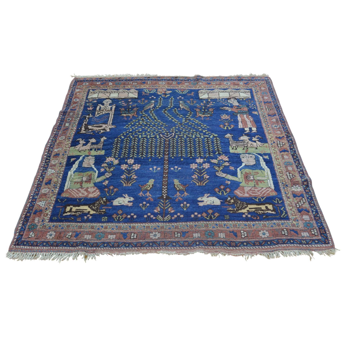 1800 Get A Rug sh28233 4 ft. 4 in. x 4 ft. 9 in. Antique Pictorial Persian Afshar Hand Knotted Square Rug Blue