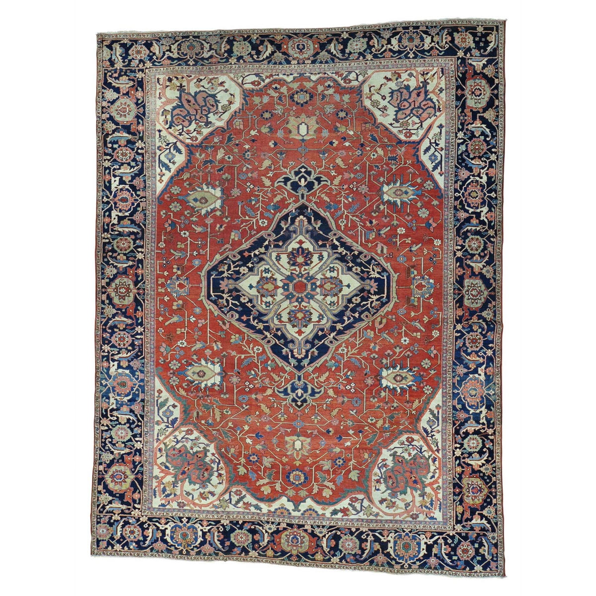 Antique persian serapi heriz oversize even wear oriental rug
