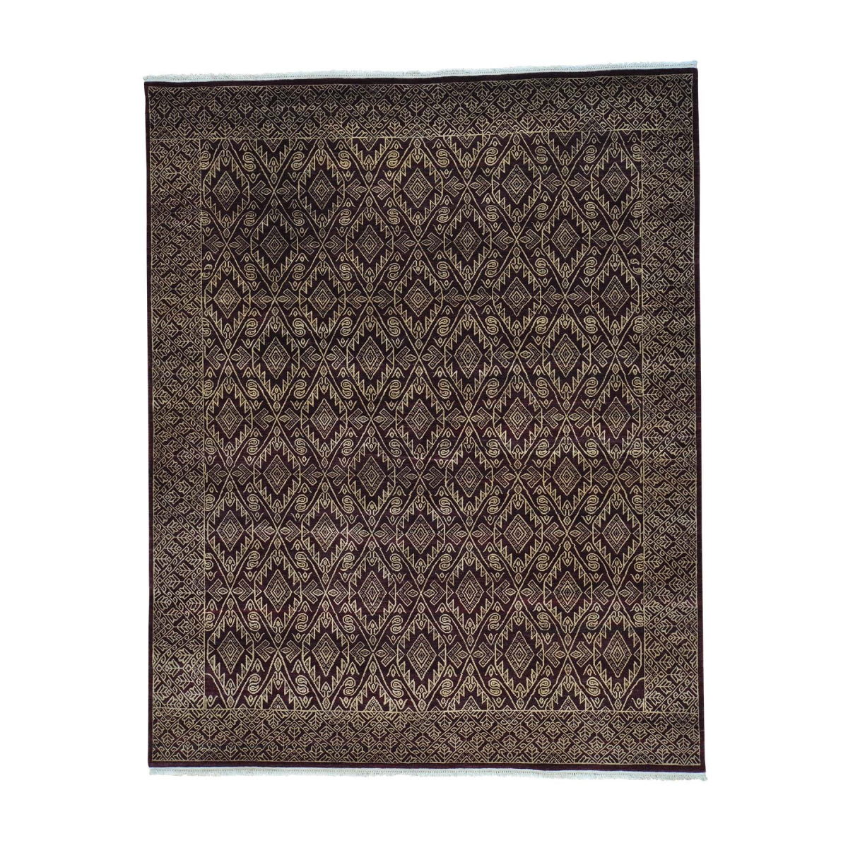1800 Get A Rug sh29177 8 ft. 1 in. x 10 ft. 1 in. Hand Knotted Geometric Design Tone on Tone Oriental Rug Burgundy