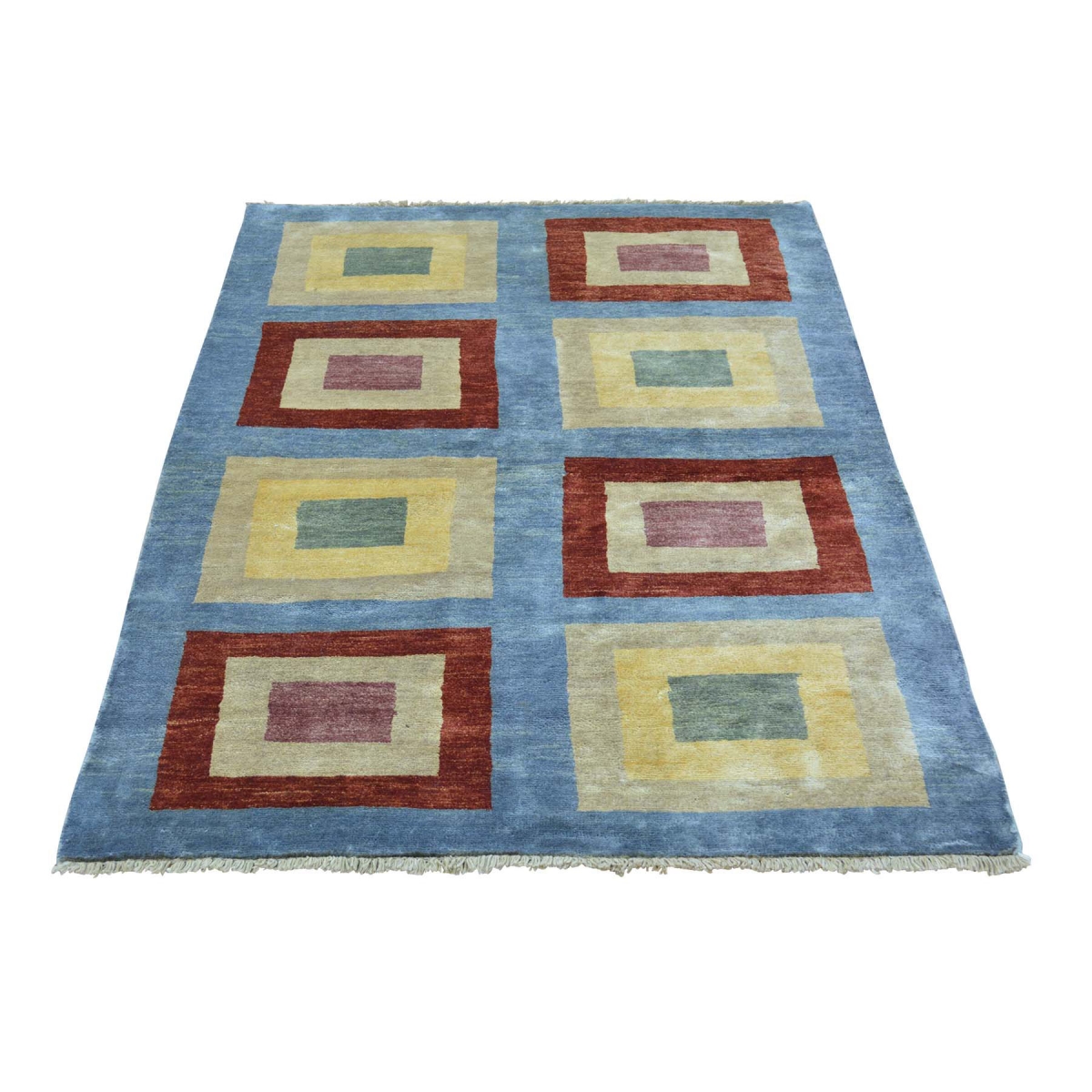 1800 Get A Rug sh29203 3 ft. 2 in. x 4 ft. 6 in. Peshawar Gabbeh Silky Wool Hand Knotted Oriental Rug Blue