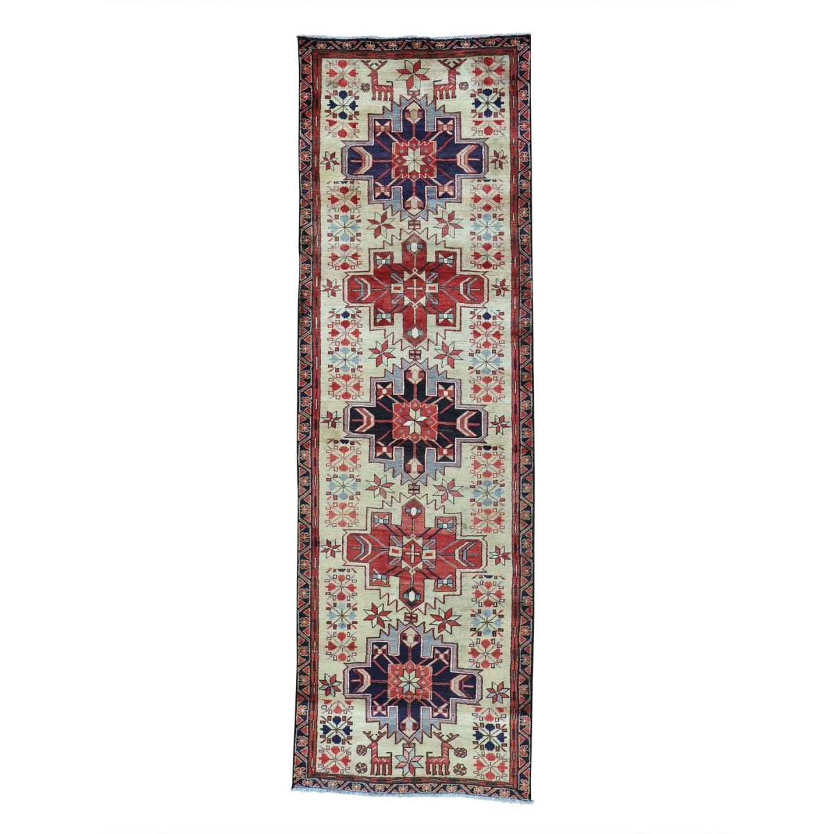 Semi antique runner persian ivory heriz with deers handmade rug