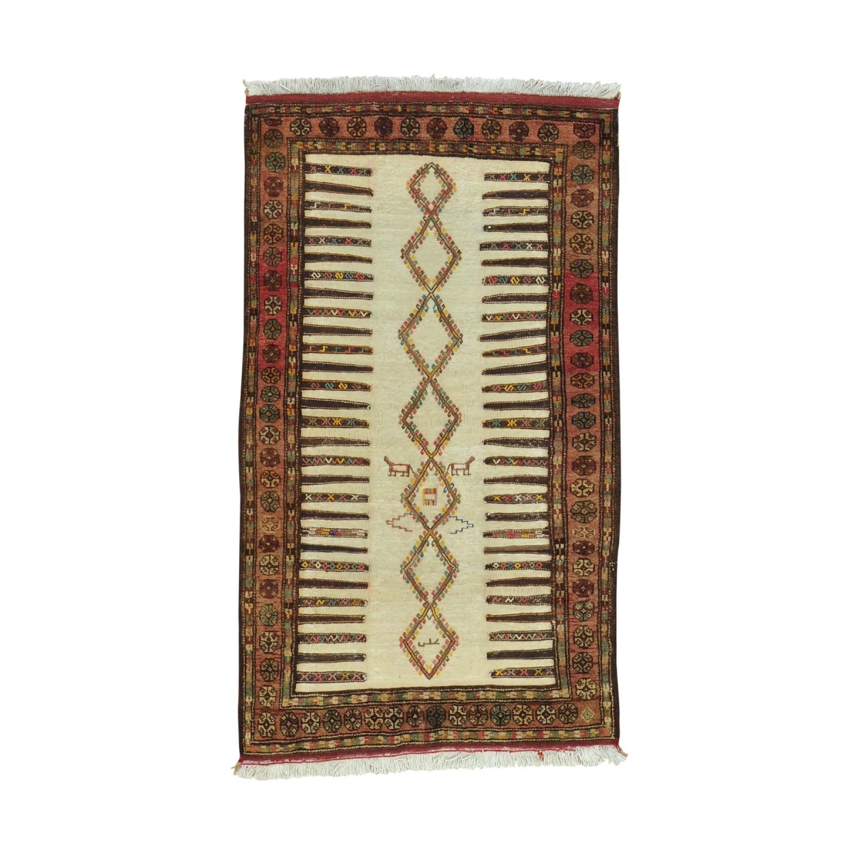 1800 Get A Rug sh29238 3 ft. 6 in. x 6 ft. Hand Woven Soumak Tribal Kashkuli Pure Wool Oriental Rug Ivory