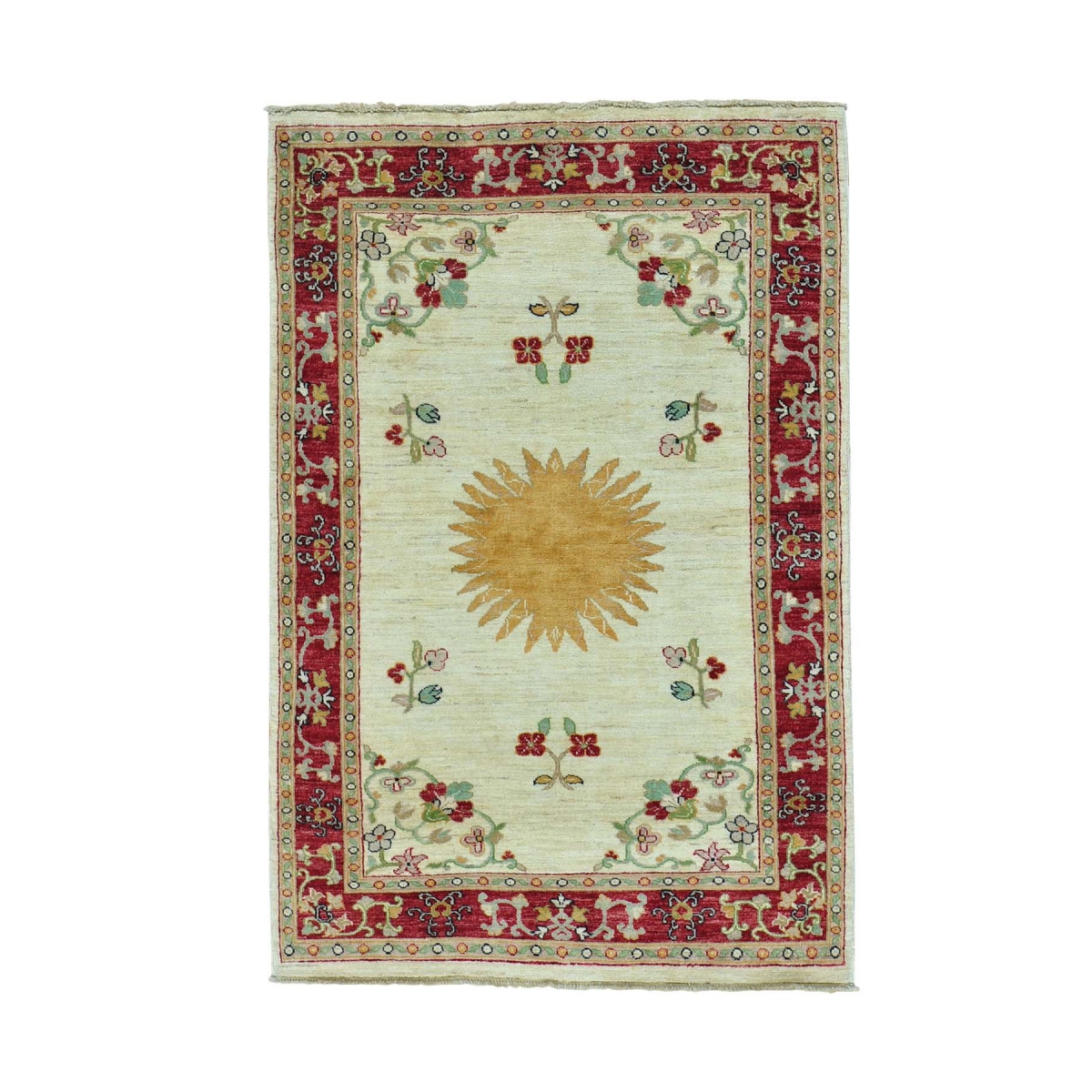 1800 Get A Rug sh29276 4 ft. x 6 ft. 1 in. Hand Knotted Peshawar with Bursting Sun Pure Wool Oriental Rug Ivory