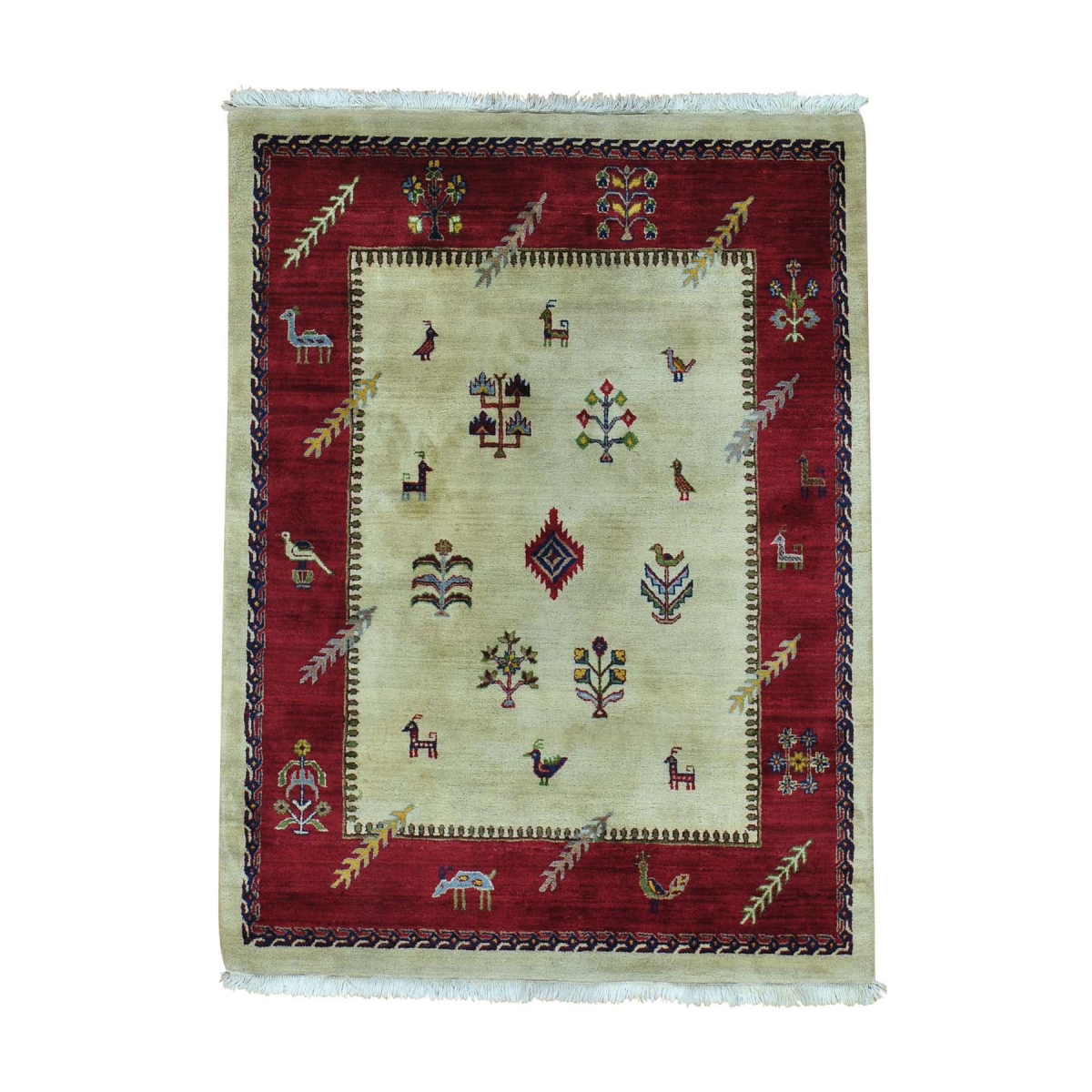 1800 Get A Rug sh29314 4 ft. 2 in. x 5 ft. 6 in. Persian Gabbeh Pure Wool Hand Knotted Oriental Rug Beige