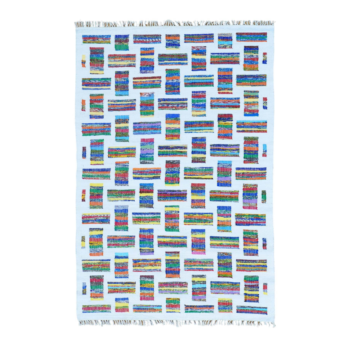 Hand woven multicolored kilim wool and sari silk oriental rug