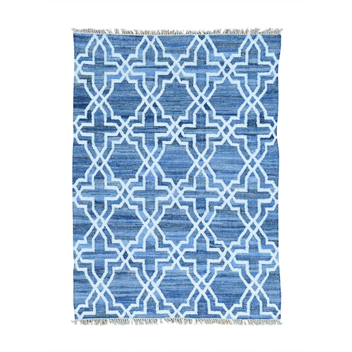 1800 Get A Rug sh29350 5 ft. x 7 ft. Hand Woven Wool and Sari Silk Denim Jeans Kilim Oriental Rug Blue