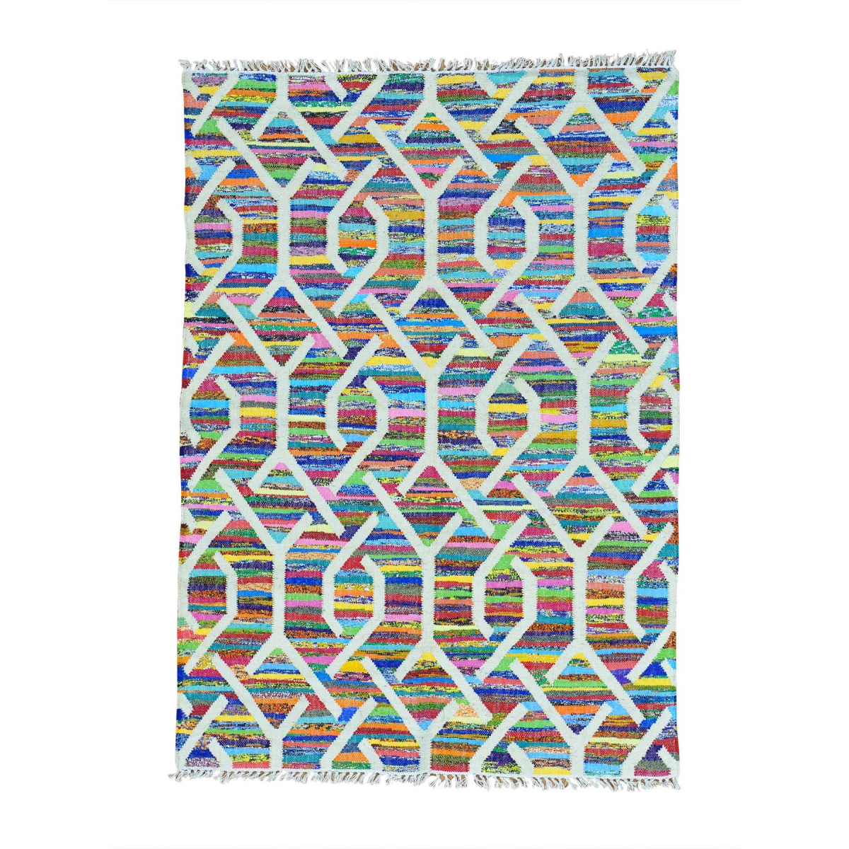 1800 Get A Rug sh29355 5 ft. x 7 ft. Hand Woven Colorful Kilim Wool and Sari Silk Oriental Rug Multicolor