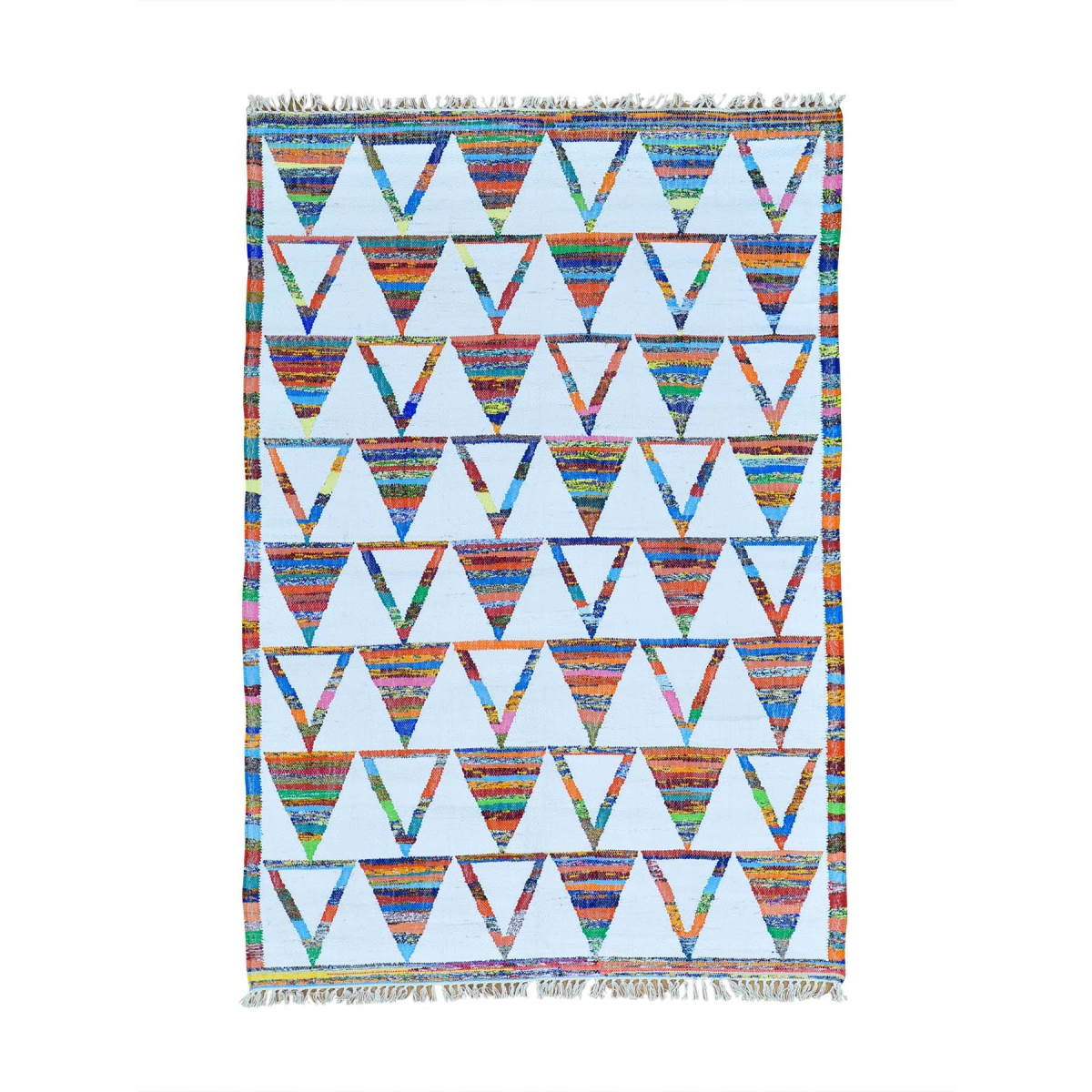 1800 Get A Rug sh29358 5 ft. x 7 ft. 2 in. Flat Weave Kilim Wool and Sari Silk Hand Woven Oriental Rug Ivory