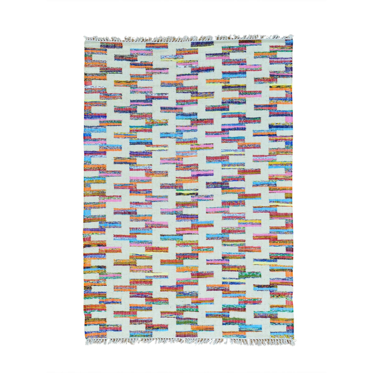 1800 Get A Rug sh29359 5 ft. x 7 ft. 1 in. Wool and Sari Silk Flat Weave Kilim Hand Woven Oriental Rug Ivory