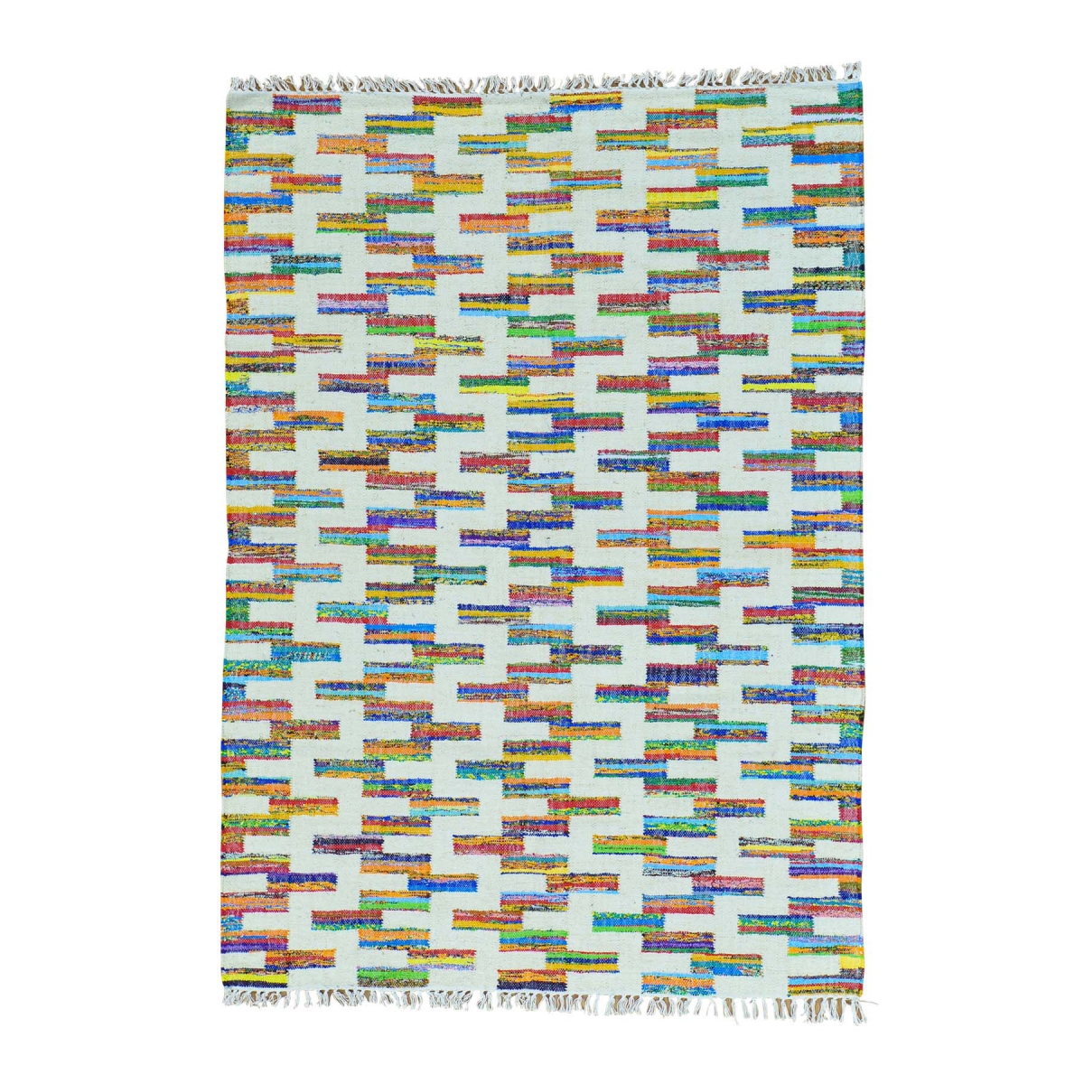 1800 Get A Rug sh29360 5 ft. x 7 ft. 1 in. Hand Woven Kilim Wool and Sari Silk Flat Weave Oriental Rug Ivory