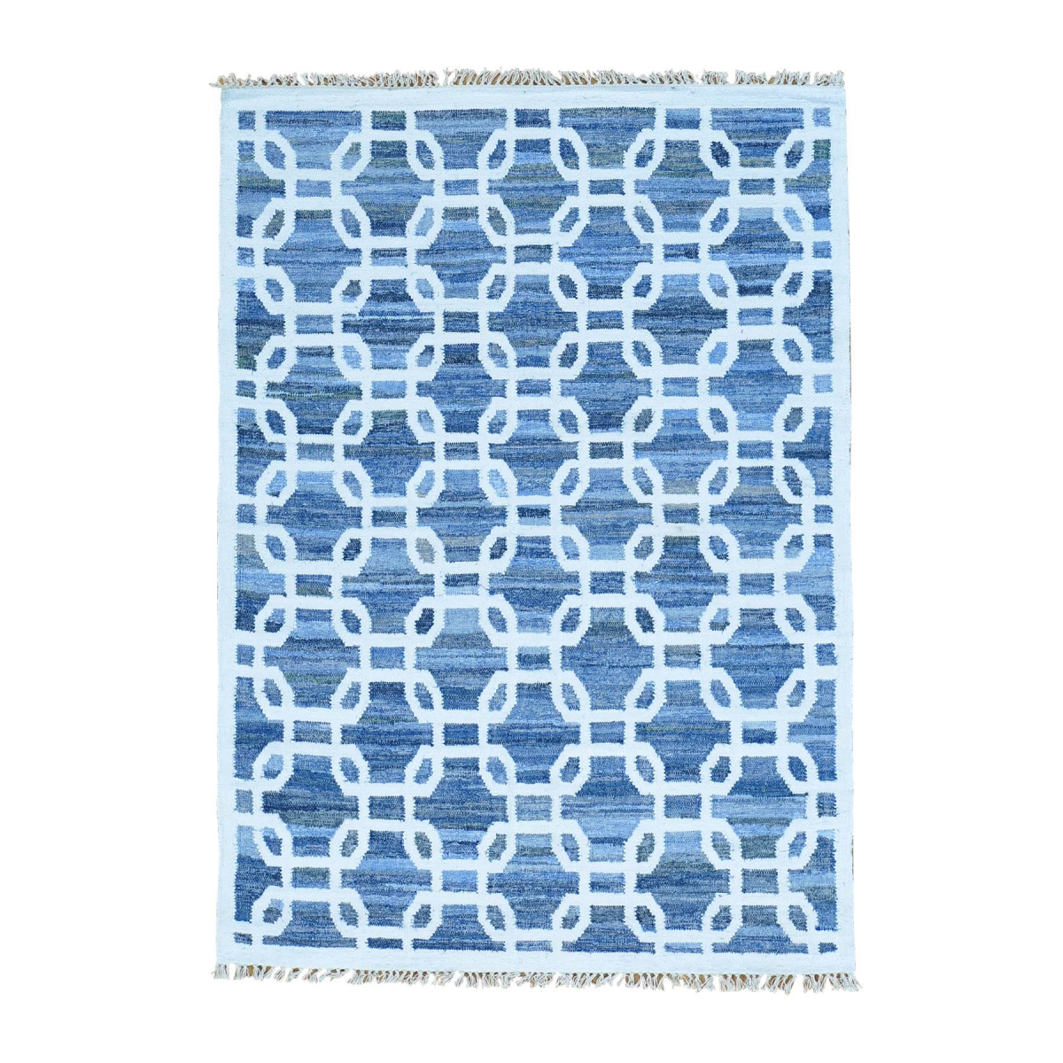 1800 Get A Rug sh29361 5 ft. x 7 ft. Flat Weave Kilim Wool and Sari Silk Denim Jeans Hand Woven Rug Blue