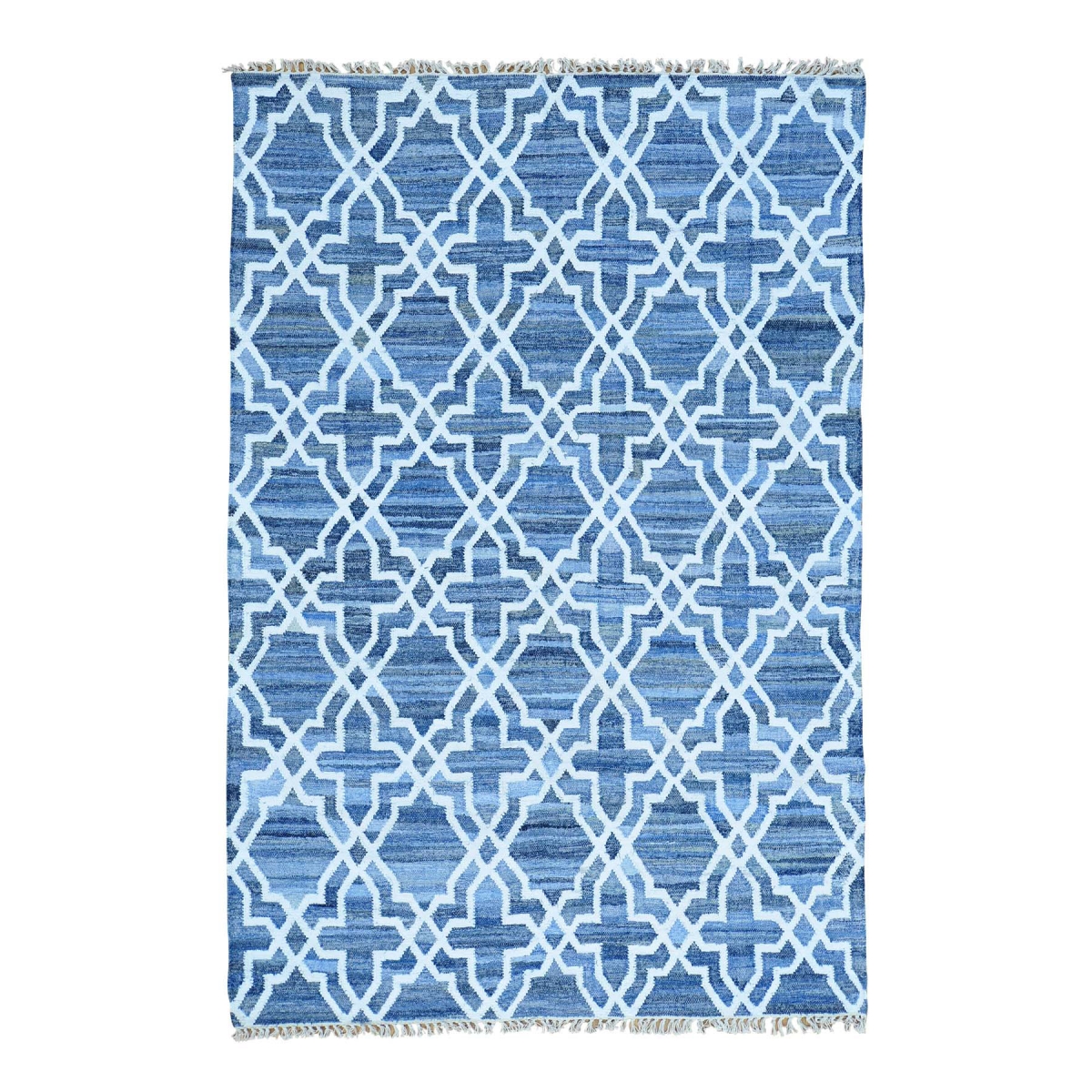 1800 Get A Rug sh29370 6 ft. x 9 ft. 1 in. Wool and Sari Silk Hand Woven Denim Jeans Kilim Oriental Rug Blue