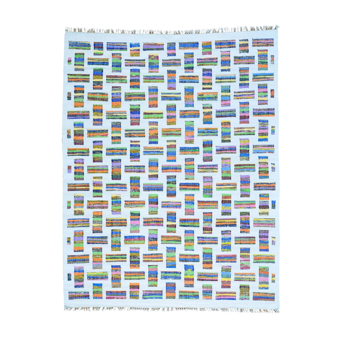 1800 Get A Rug sh29409 7 ft. 10 in. x 10 ft. Cotton and Sari Silk Hand Woven Flat Weave Kilim Oriental Rug Ivory