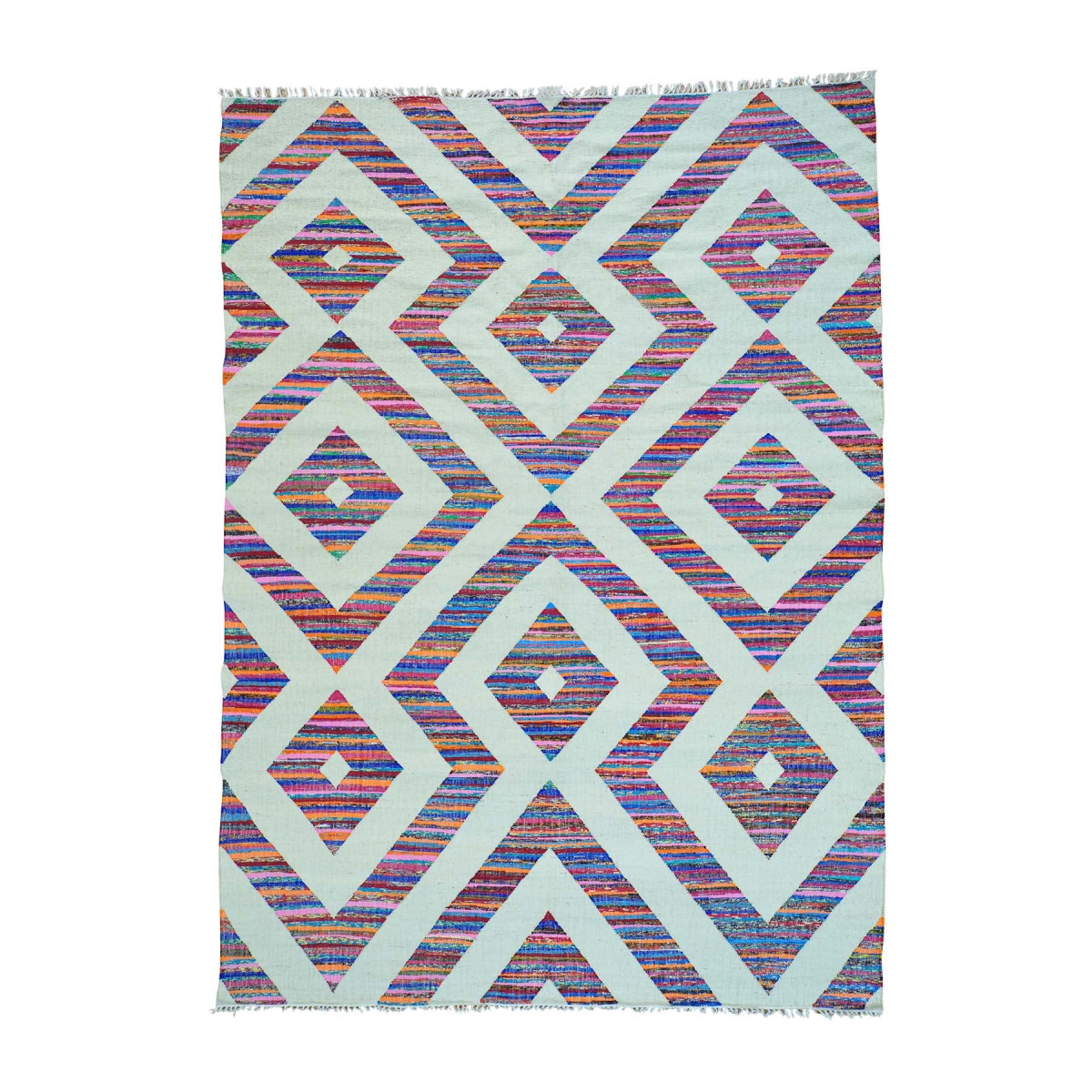1800 Get A Rug sh29434 9 ft. x 12 ft. 4 in. Geometric Design Flat Weave Kilim Cotton and Sari Silk Rug Multicolor