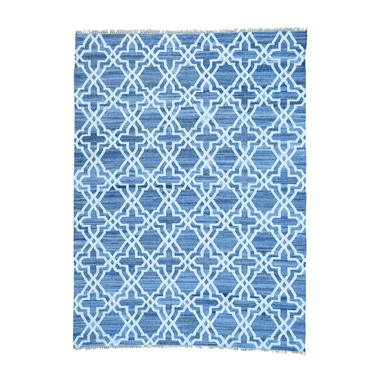 1800 Get A Rug sh29442 8 ft. 10 in. x 12 ft. 1 in. Hand Woven Denim Jeans Kilim Cotton and Sari Silk Rug Blue