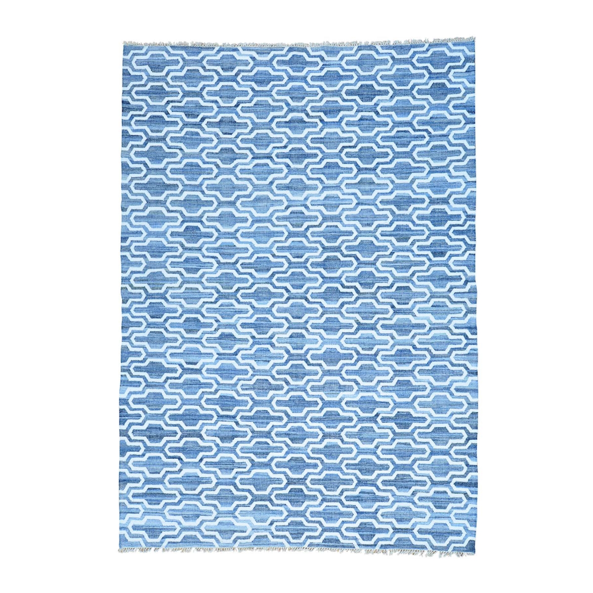 1800 Get A Rug sh29450 9 ft. 10 in. x 13 ft. 10 in. Cotton and Sari Silk Denim Jeans Kilim Hand Woven Rug Blue
