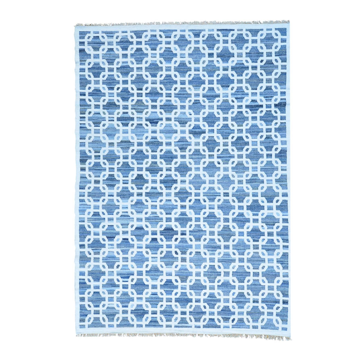 1800 Get A Rug sh29452 10 ft. x 14 ft. Denim Jeans Kilim Cotton and Sari Silk Hand Woven Oriental Rug Blue