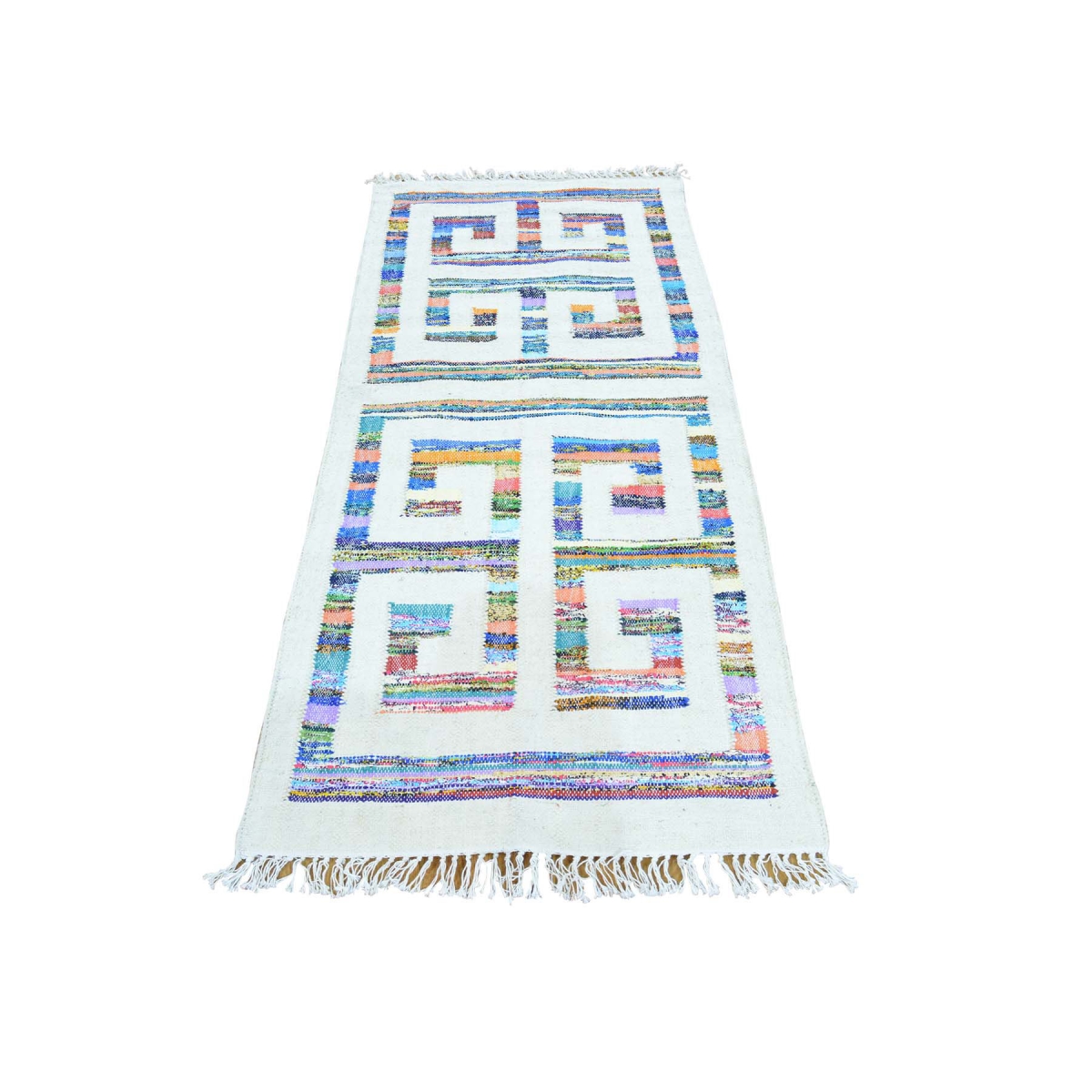 1800 Get A Rug sh29474 2 ft. 7 in. x 5 ft. 10 in. Runner Flat Weave Kilim Cotton and Sari Silk Oriental Rug Ivory