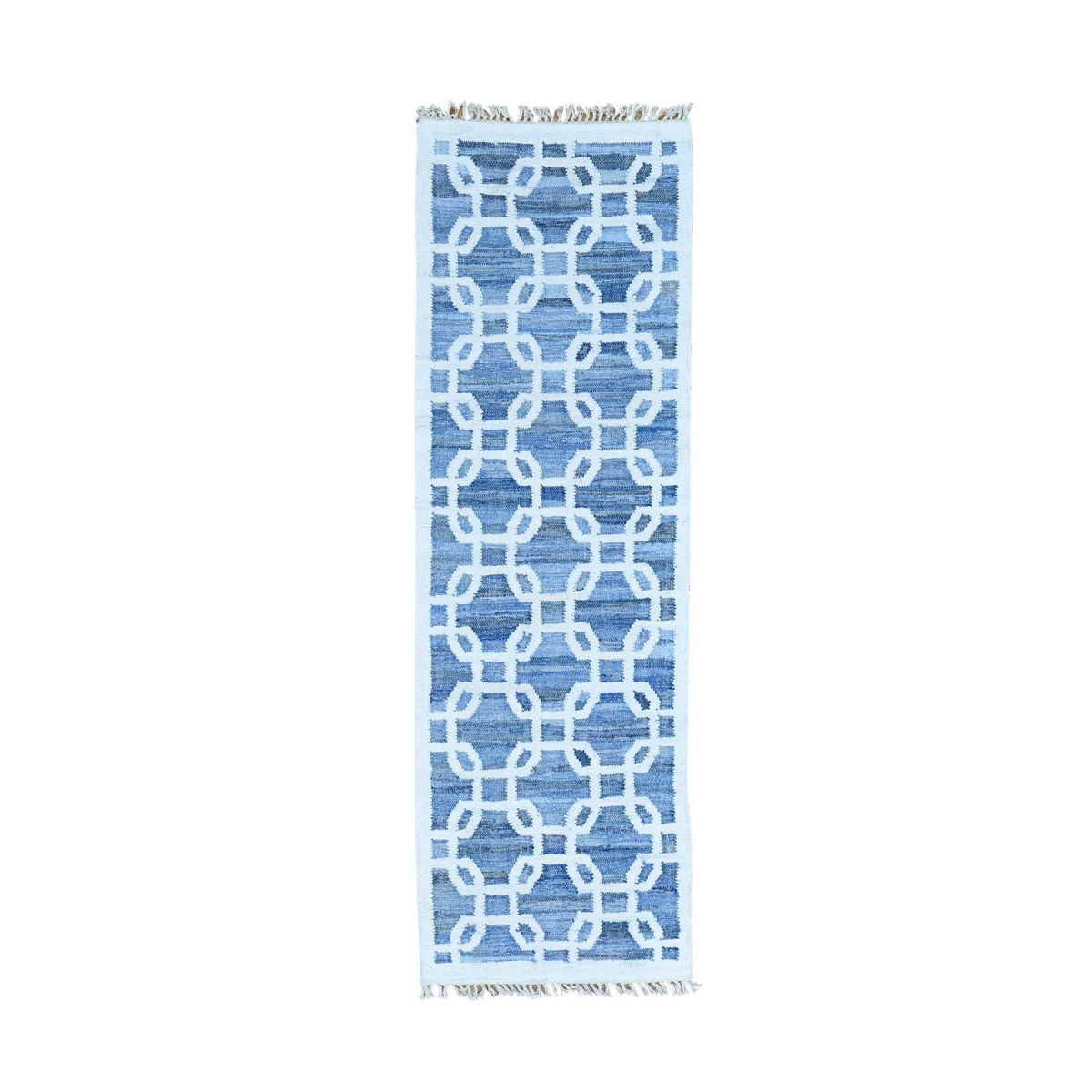 1800 Get A Rug sh29496 2 ft. 7 in. x 8 ft. Denim Jeans Kilim Runner Cotton and Sari Silk Oriental Rug Blue