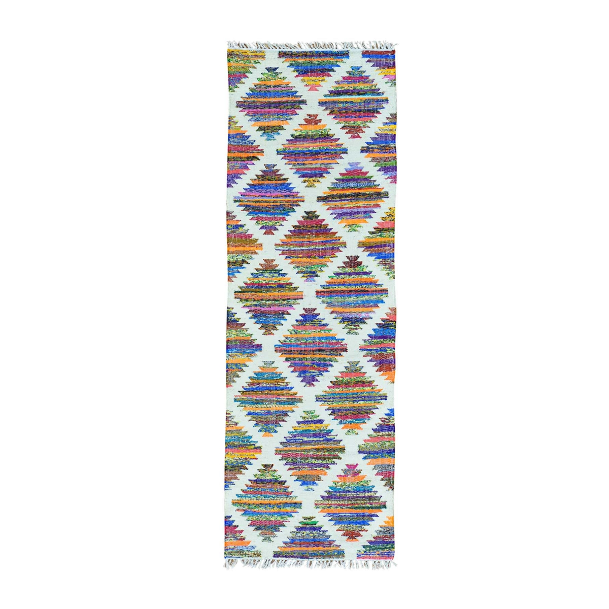 1800 Get A Rug sh29500 2 ft. 7 in. x 8 ft. Cotton and Sari Silk Geometric Design Kilim Runner Oriental Rug Multicolor