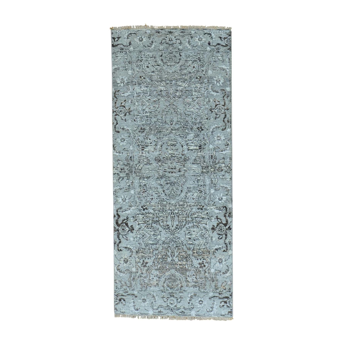 1800 Get A Rug sh29517 2 ft. 7 in. x 6 ft. 3 in. Undyed Natural Wool Heriz Design Runner Hand Knotted Rug Grey