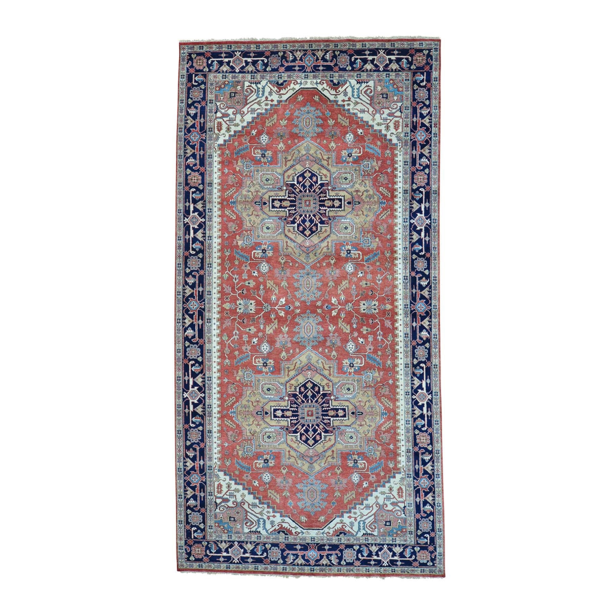 Gallery size pure wool serapi heriz hand knotted oriental rug