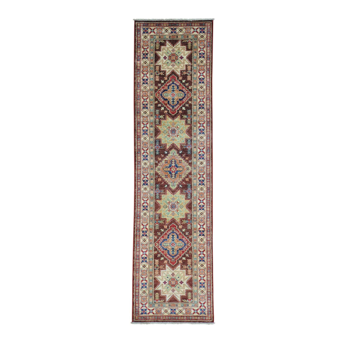 1800 Get A Rug sh29614 2 ft. 7 in. x 10 ft. Super Kazak Runner Pure Wool Oriental Rug Chocolate Brown