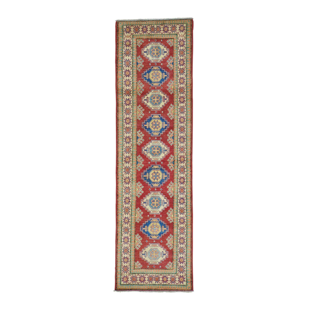 1800 Get A Rug sh29627 2 ft. 8 in. x 9 ft. 7 in. Pure Wool Tribal Design Kazak Runner Hand Knotted Oriental Rug Red