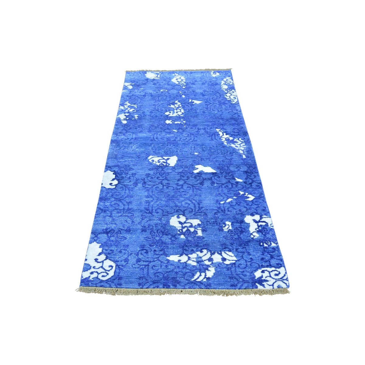 1800 Get A Rug sh29635 2 ft. 5 in. x 5 ft. 9 in. Runner Modern Tone on Tone Bamboo Silk Handmade Rug Denim Blue