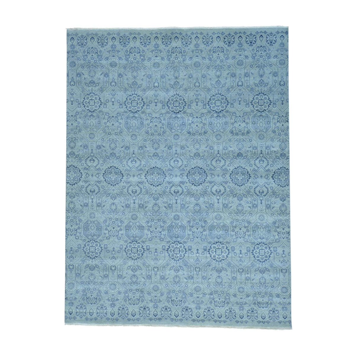 1800 Get A Rug sh29667 9 ft. x 12 ft. Tone on Tone Geometric Agra Handmade Oriental Rug Grey and Sky Blue