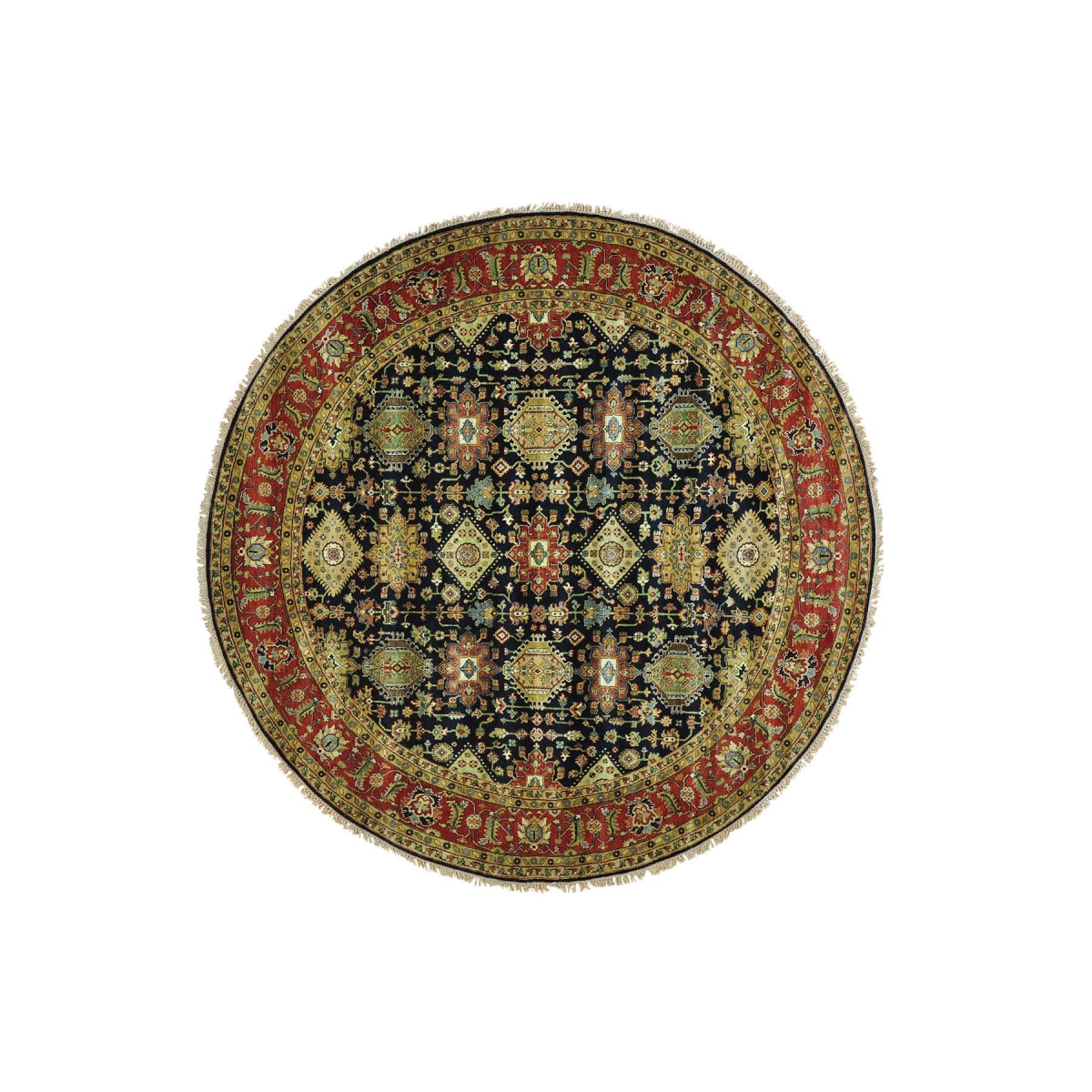 1800 Get A Rug sh29674 10 ft. x 10 ft. Hand Knotted Round Karajeh 100 Percent Wool Oriental Rug Black