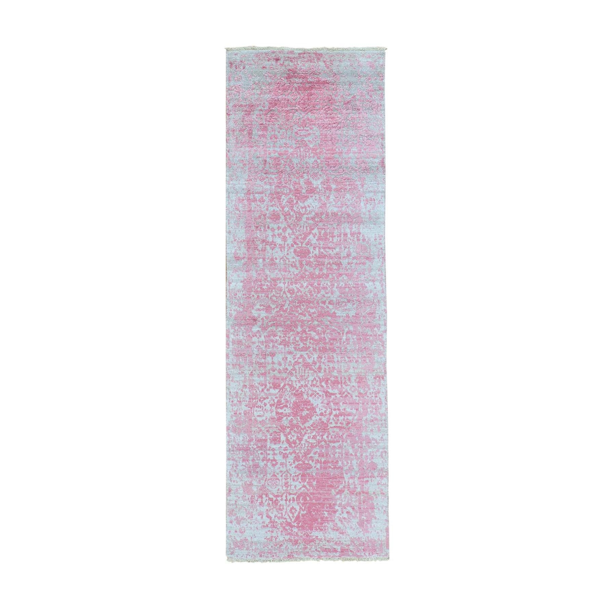 1800 Get A Rug sh29751 2 ft. 6 in. x 7 ft. 9 in. Tone on Tone Broken Persian Design Runner Wool and Silk Rug Pink