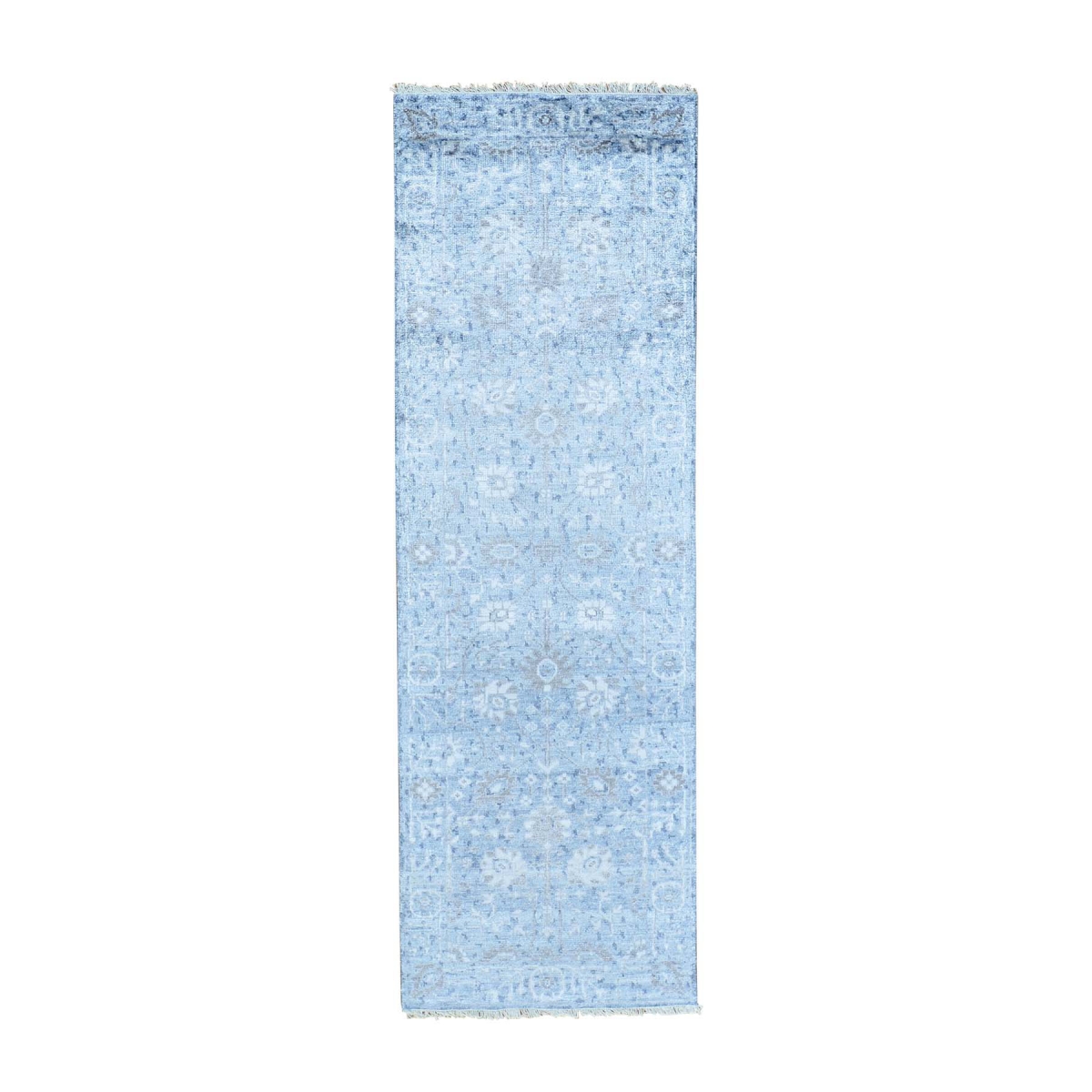 1800 Get A Rug sh29759 2 ft. 7 in. x 7 ft. 9 in. Bamboo Silk Tabriz Tone on Tone Runner Hand Knotted Rug Blue