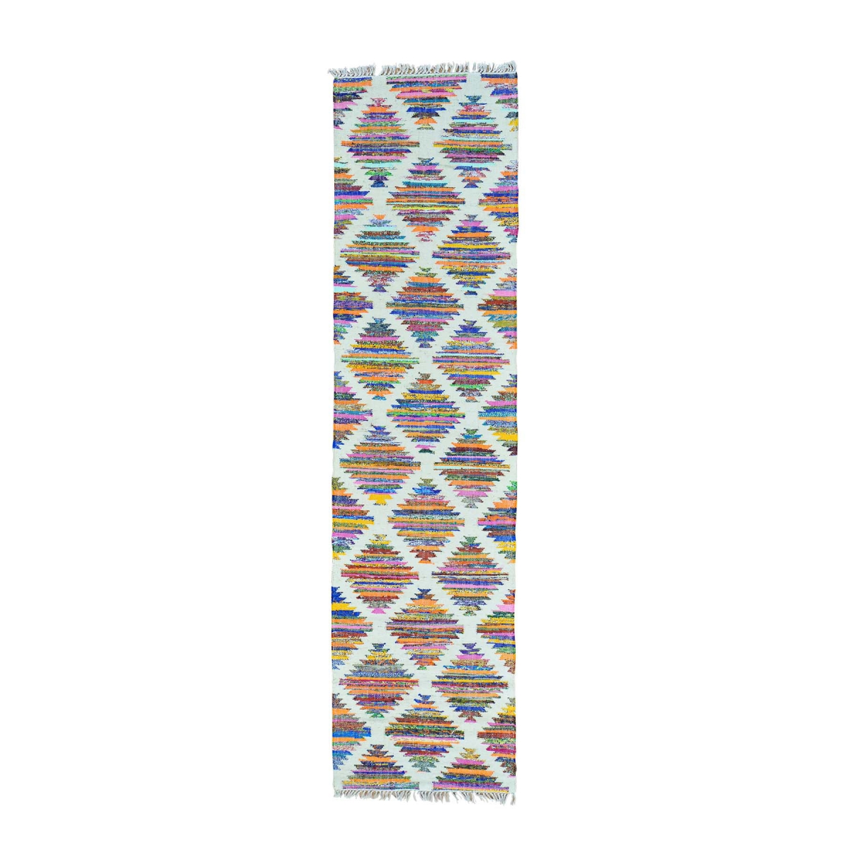 1800 Get A Rug sh29843 2 ft. 7 in. x 10 ft. 1 in. Kilim Hand Woven Runner Cotton and Sari Silk Oriental Rug Multicolor