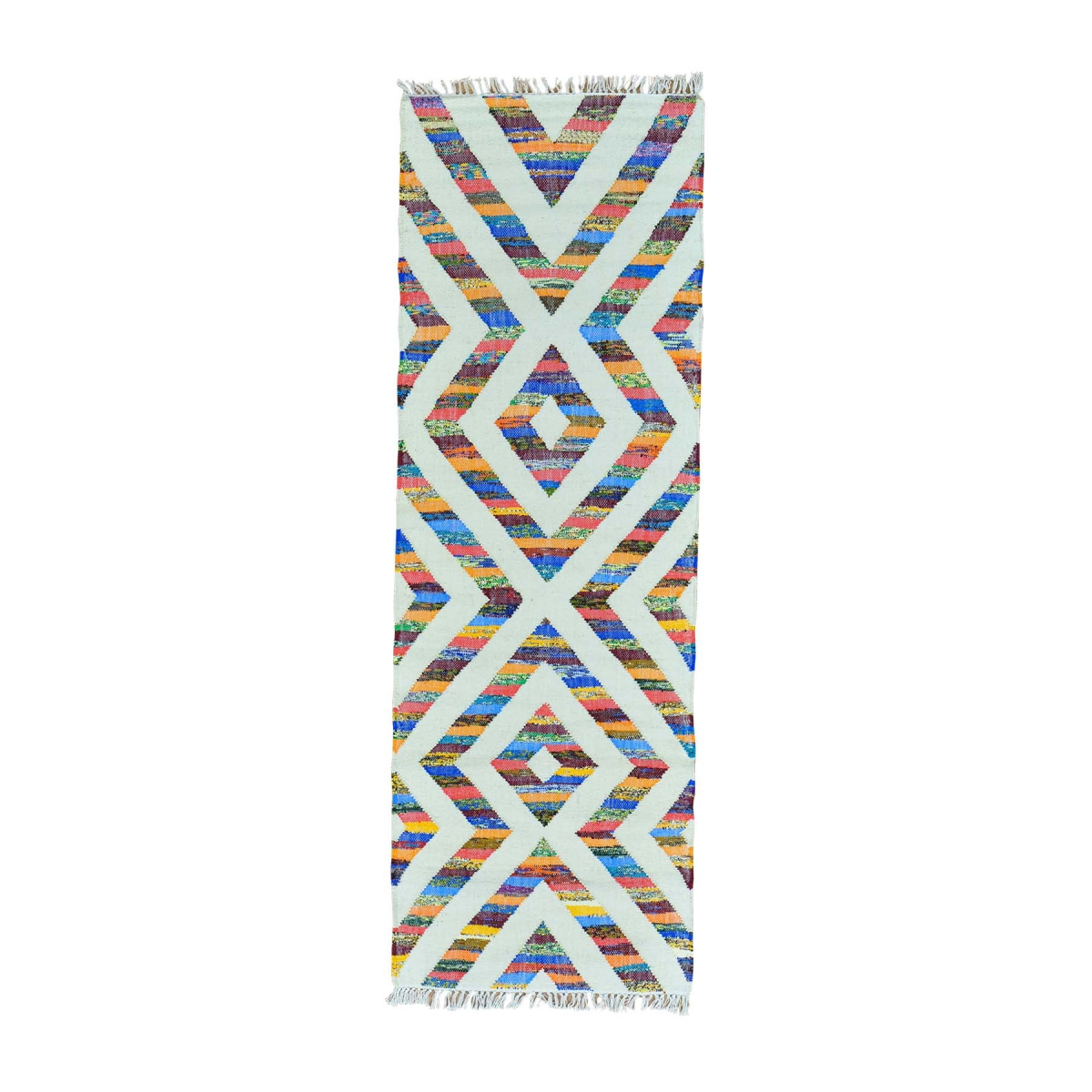 1800 Get A Rug sh29844 2 ft. 7 in. x 7 ft. 10 in. Runner Cotton and Sari Silk Flat Weave Kilim Hand Woven Rug Multicolor