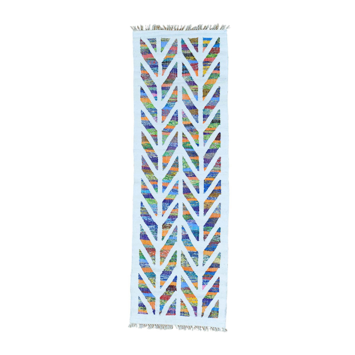 1800 Get A Rug sh29848 2 ft. 7 in. x 8 ft. Cotton and Sari Silk Kilim Runner Hand Woven Oriental Rug Ivory