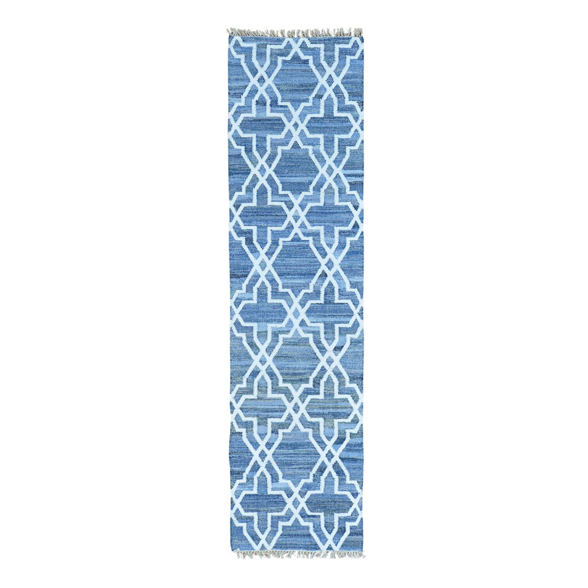 1800 Get A Rug sh29851 2 ft. 7 in. x 10 ft. Denim Jeans Kilim Cotton and Sari Silk Runner Oriental Rug Blue