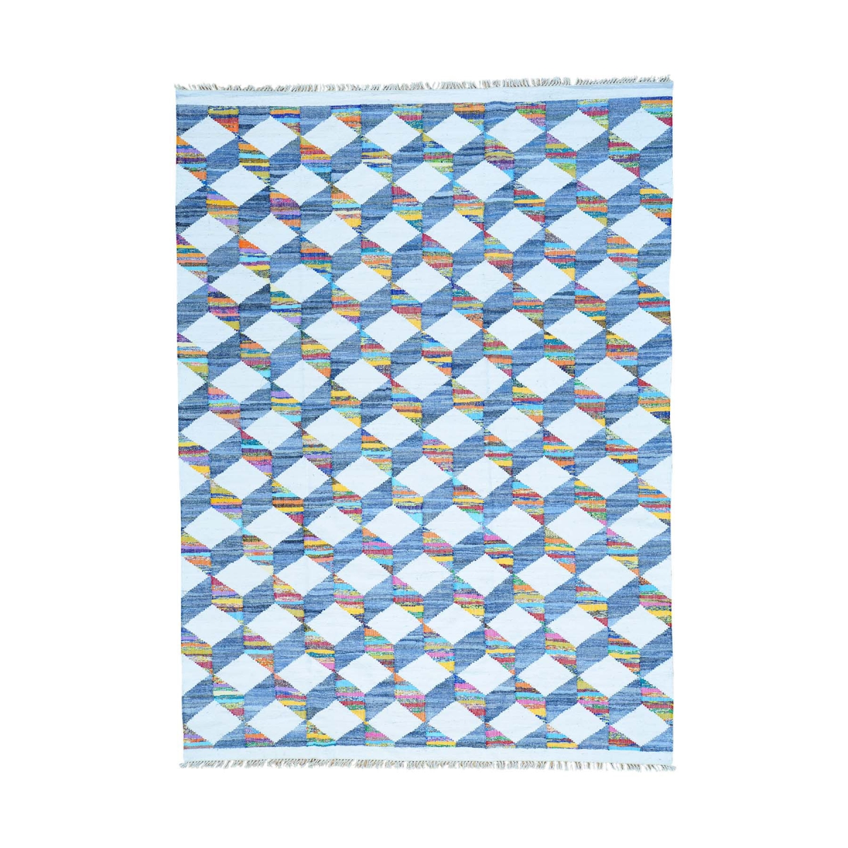 1800 Get A Rug sh29857 8 ft. 10 in. x 12 ft. Flat Weave Hand Woven Kilim Cotton and Sari Silk Oriental Rug Multicolor