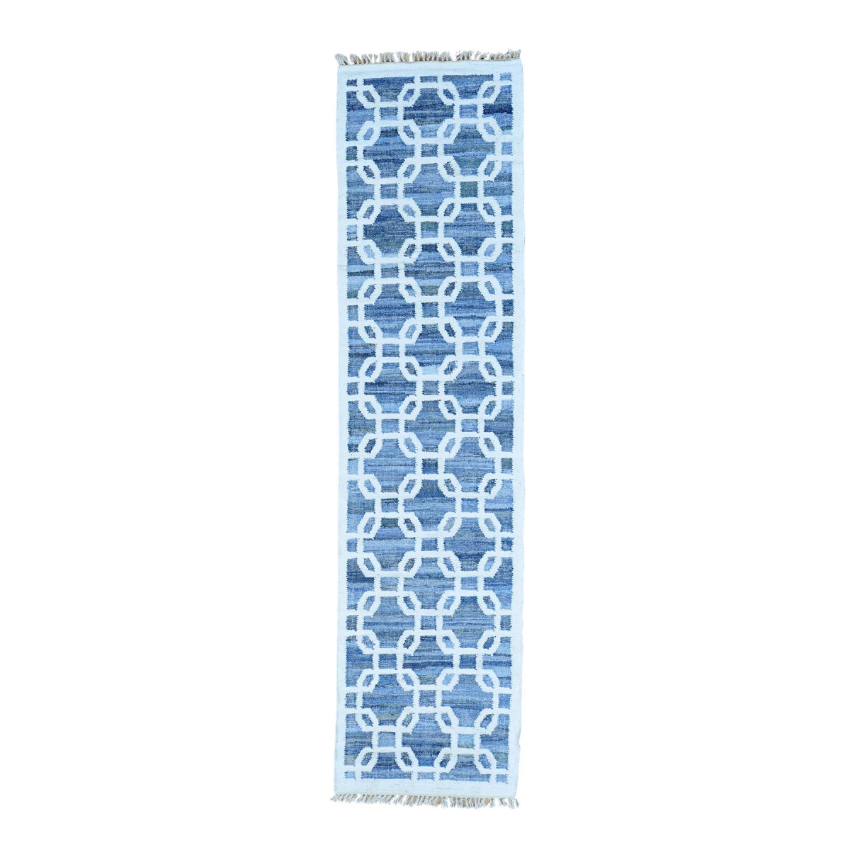 1800 Get A Rug sh29865 2 ft. 7 in. x 10 ft. Denim Jeans Kilim Cotton and Sari Silk Runner Hand Woven Rugc Blue