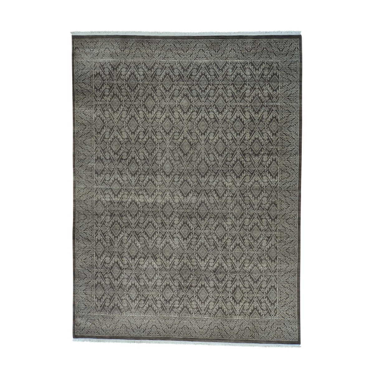 1800 Get A Rug sh29890 9 ft. 1 in. x 12 ft. 2 in. Tone on Tone Geometric Design Hand Knotted Oriental Rug Brown