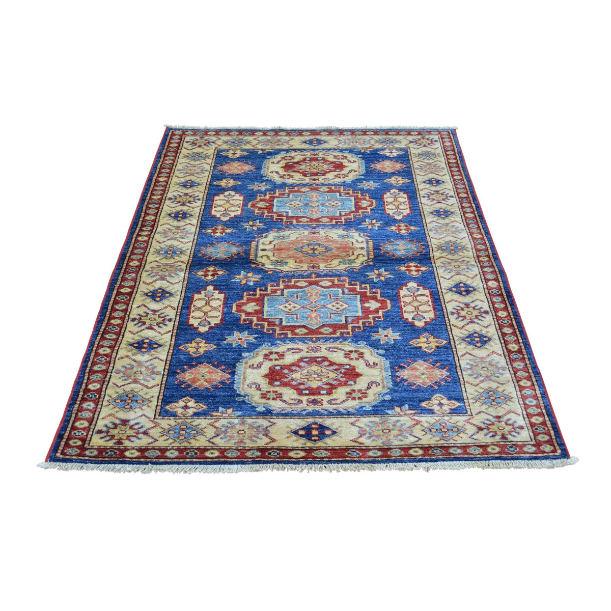 1800 Get A Rug sh29894 3 ft. 4 in. x 4 ft. 7 in. Hand Knotted Super Kazak Pure Wool Oriental Rug Denim Blue