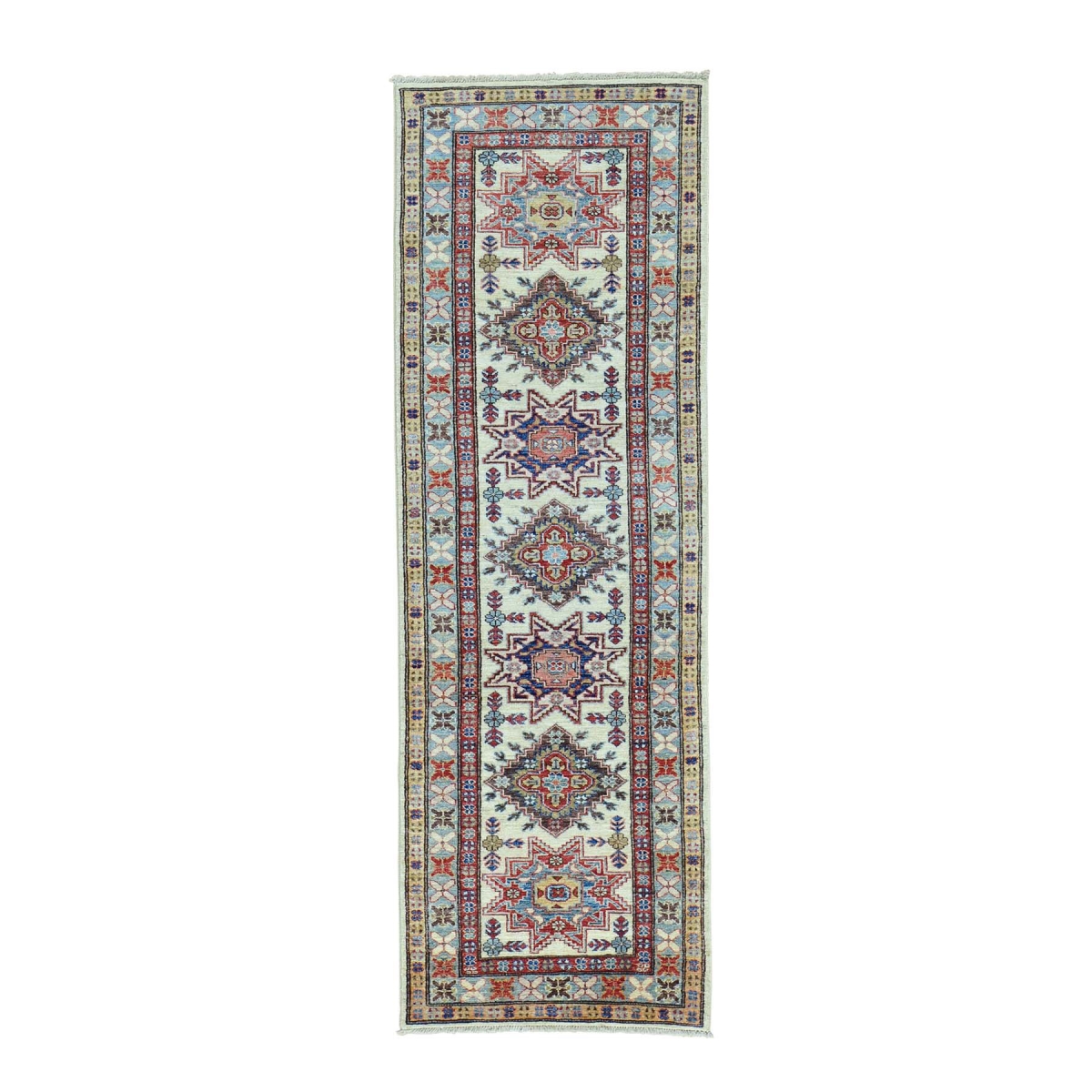 1800 Get A Rug sh29910 2 ft. 6 in. x 7 ft. 7 in. Pure Wool Super Kazak Runner Hand Knotted Oriental Rug Ivory